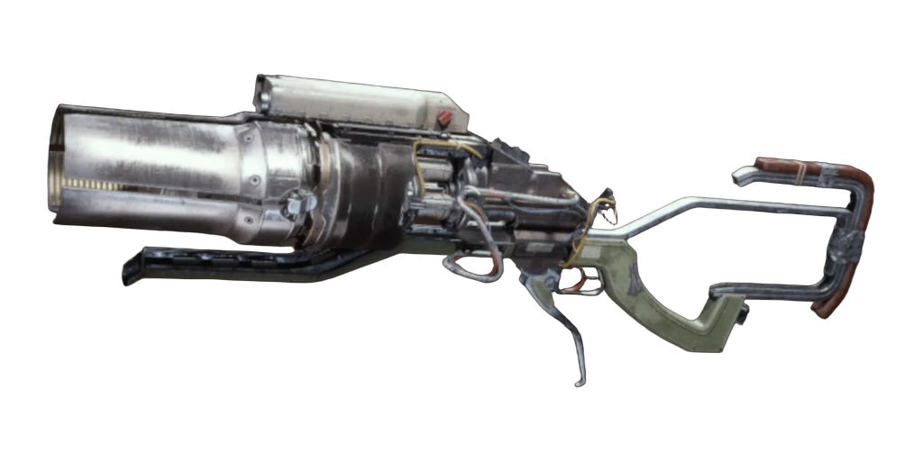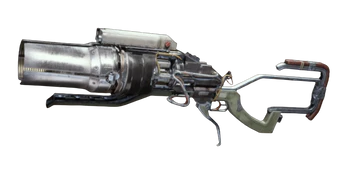 An experimental weapon that can either fire a wide short range blast, or be focused to fire a tight medium range beam of heat.
