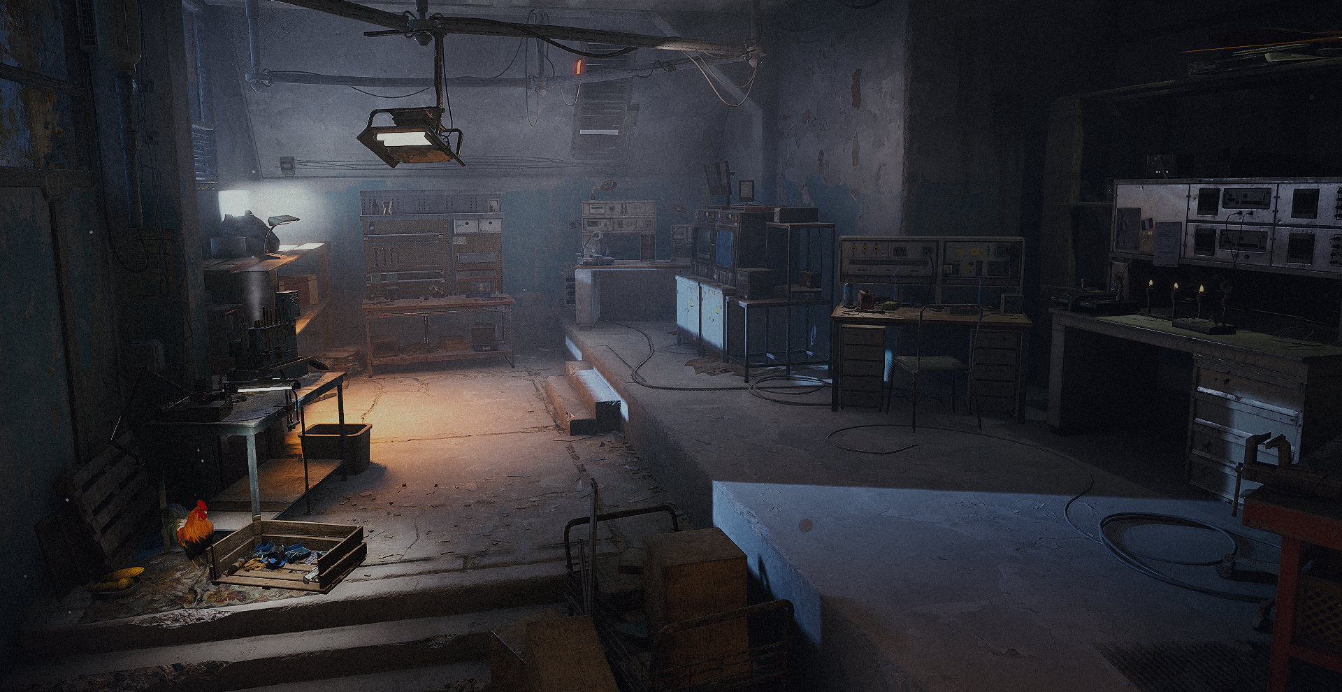 The Workshop lets you craft gear, weapons, items, and consumables. You start with the workbench, a free basic bench which enables you to craft basic weapons and most types of ammo, and Scrappy, the rooster which passively generates basic materials as you explore Topside.