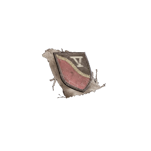 A torn patch, found amidst rubble and ruin.